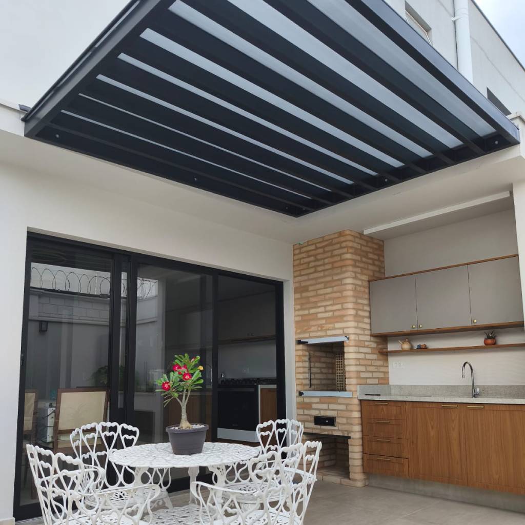 E claro, as coberturas com pergolados metálicos estão em alta! Elas trazem modernidade e elegância aos espaços, valorizando o ambiente com design contemporâneo.